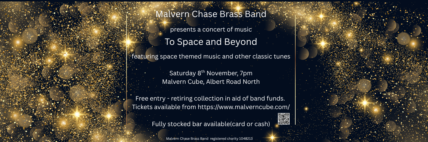 The band welcomes new members of all ages and all levels of ability. We have a training band to help new-comers develop their skills, and can also offer some tuition and the loan of instruments. The training band rehearses on Mondays in term-time from 18:15 to 19:00 in the Chase School Annexe off Geraldine Close, in Malvern. Thinking of starting or resuming playing? Come along to a session just before 18:15. Join UsorTraining Bandpages or just come along.